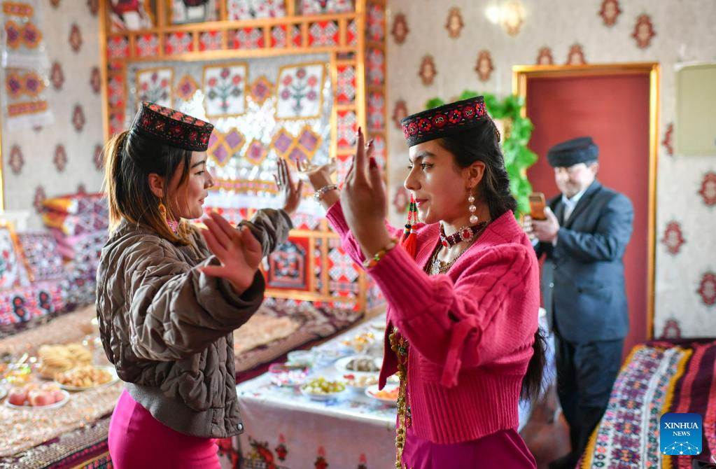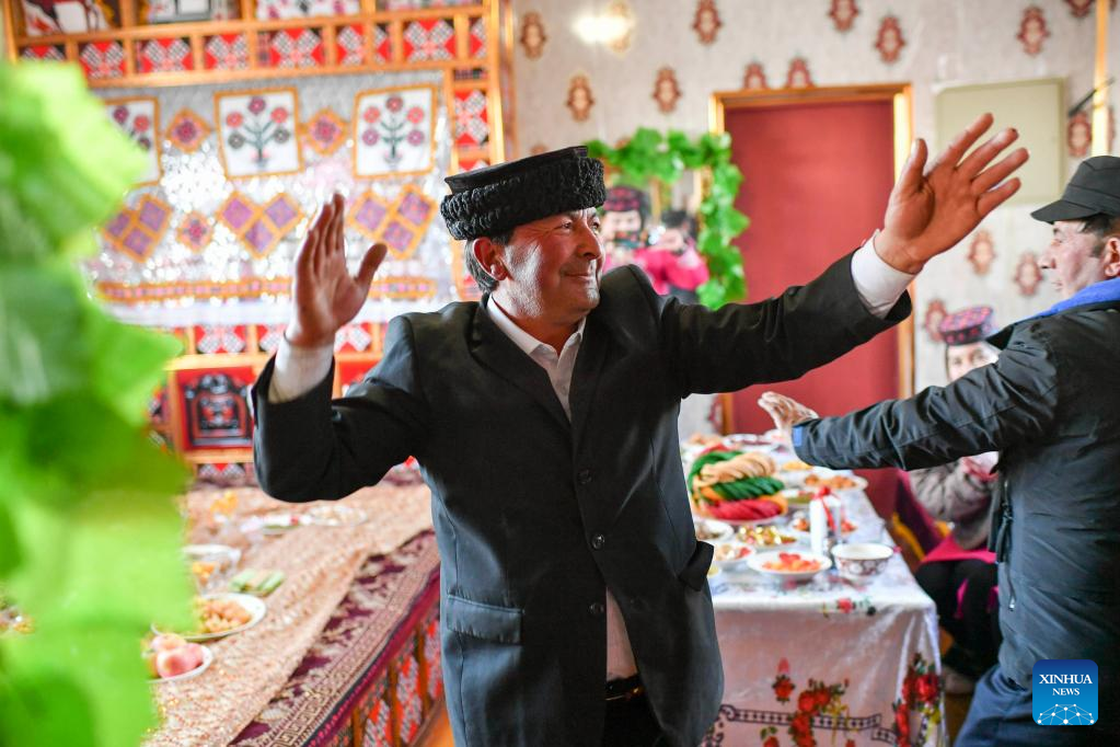 As spring arrives, Duri's family and their fellow villagers are celebrating the Noruz Festival, which is observed by various ethnic groups in Xinjiang. They are immersed in the joy of a better life. (Xinhua/Hu Huhu)