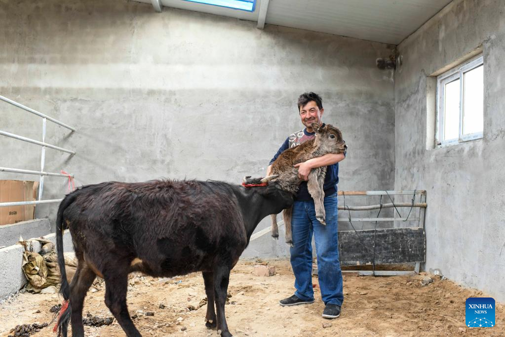 Duri Jarman moves his cows to a standard cowshed in front of his home in Aimin Village of Taxkorgan Tajik Autonomous County, northwest China's Xinjiang Uygur Autonomous Region, June 26, 2019.
