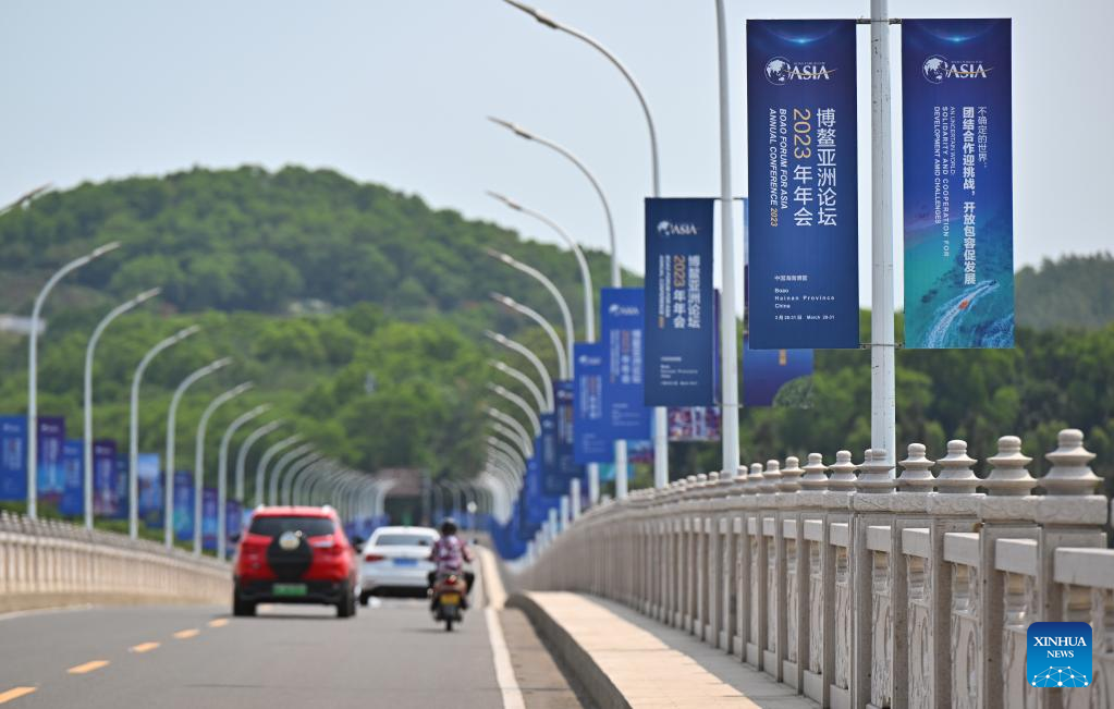 Posters for the Boao Forum for Asia (BFA) Annual Conference 2023 are seen in Boao, south China's Hainan Province, March 25, 2023. The BFA will hold its annual conference from March 28 to 31 in Boao, a coastal town in China's island province of Hainan. (Xinhua/Guo Cheng)