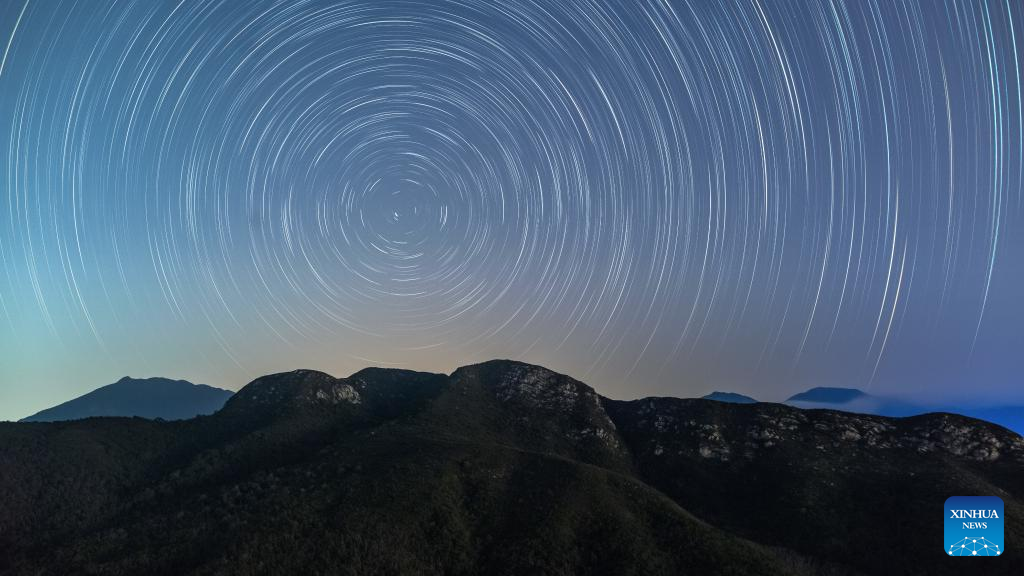 This photomontage taken on April 6, 2023 shows the star trails above Xichong community in Shenzhen, south China's Guangdong Province. Certified by the International Dark-Sky Association (IDA), Xichong community in Shenzhen, south china's Guangdong Province, has become an International Dark Sky Community in China.
