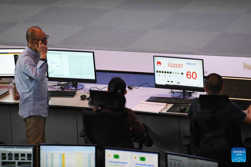 Researchers await the results for an experiment at the control center of the experimental advanced superconducting tokamak (EAST) in Hefei, east China's Anhui Province, April 12, 2023.