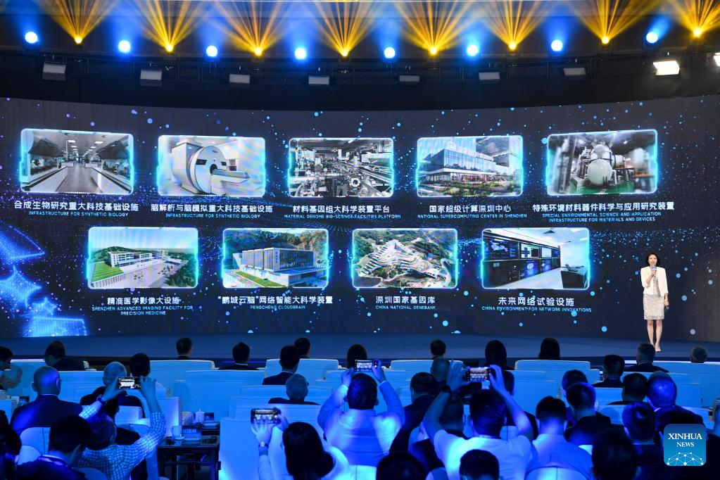 Major scientific and technological infrastructures are announced to settle in Guangming Science City during the Guangming Science City Forum in Shenzhen, south China's Guangdong Province, April 27, 2023. The first Guangming Science City Forum kicked off in Shenzhen on Thursday. (Xinhua/Liang Xu)