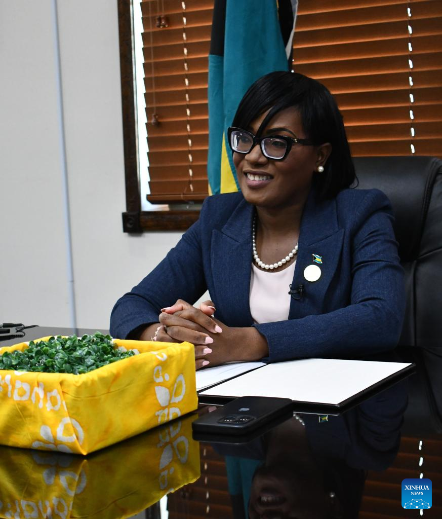 Ginger Moxey, minister for Grand Bahama, speaks during an interview with Xinhua in Grand Bahama Island, the northernmost island in the Bahamas, May 8, 2023.(Xinhua/Lin Zhaohui)