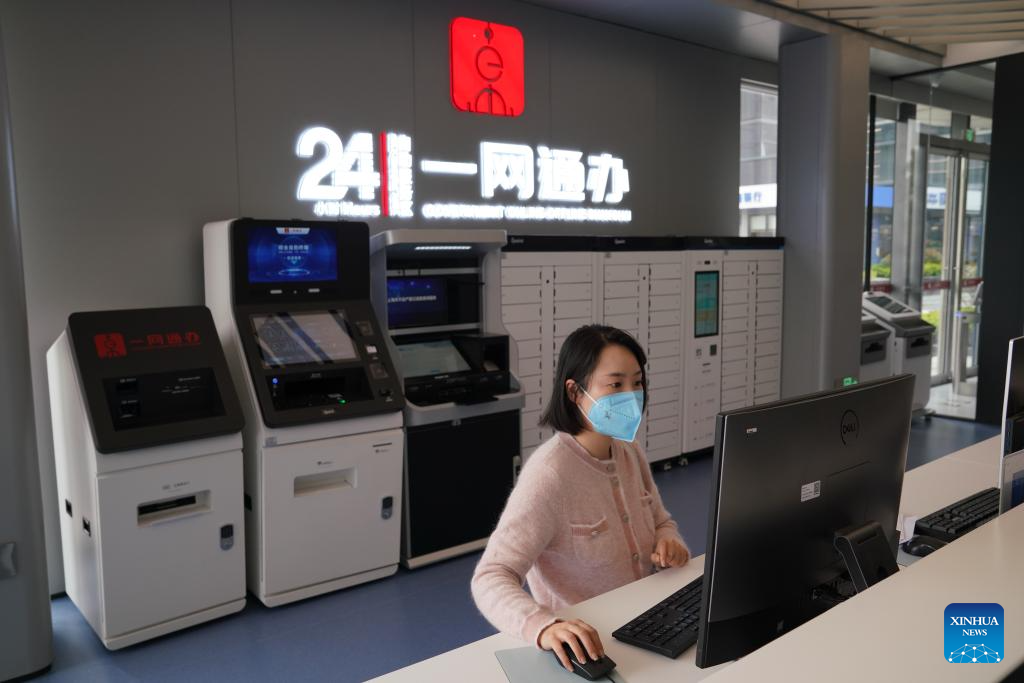 A citizen handles business at Shanghai's Pilot Free Trade Zone Lingang Special Area in east China's Shanghai, May 12, 2023. Since its establishment in 2019, Lingang Special Area has taken the improvement of business environment as an important task, making efforts to update the hardware and software facilities and personnel of the government affairs service center to better serve Shanghai-based enterprises. (Xinhua/Ma Ning)