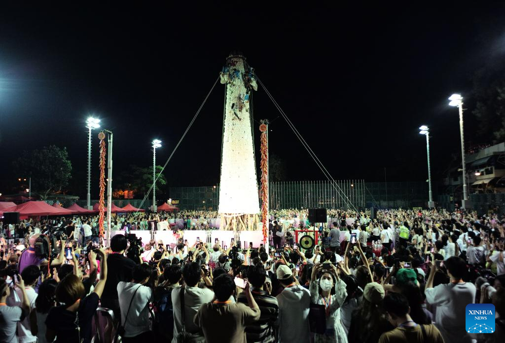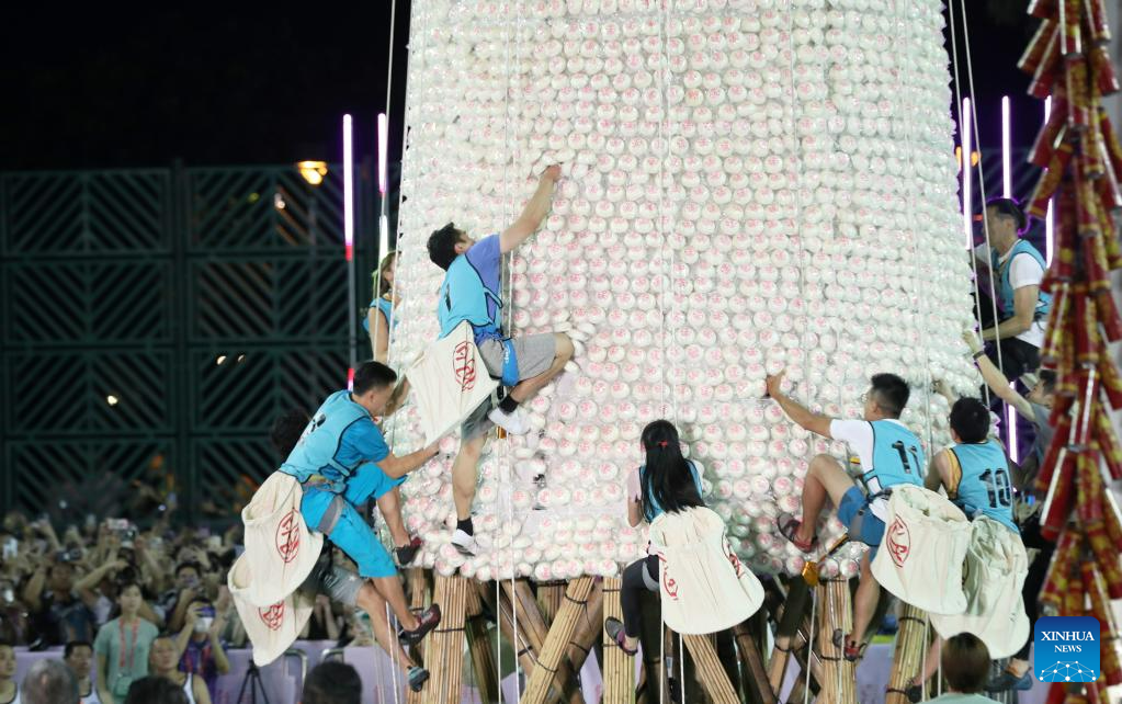 The Bun Festival, one of Hong Kong's most colorful cultural celebration events, has been on China's national list of intangible cultural heritage since 2011. (Xinhua/Li Gang)
