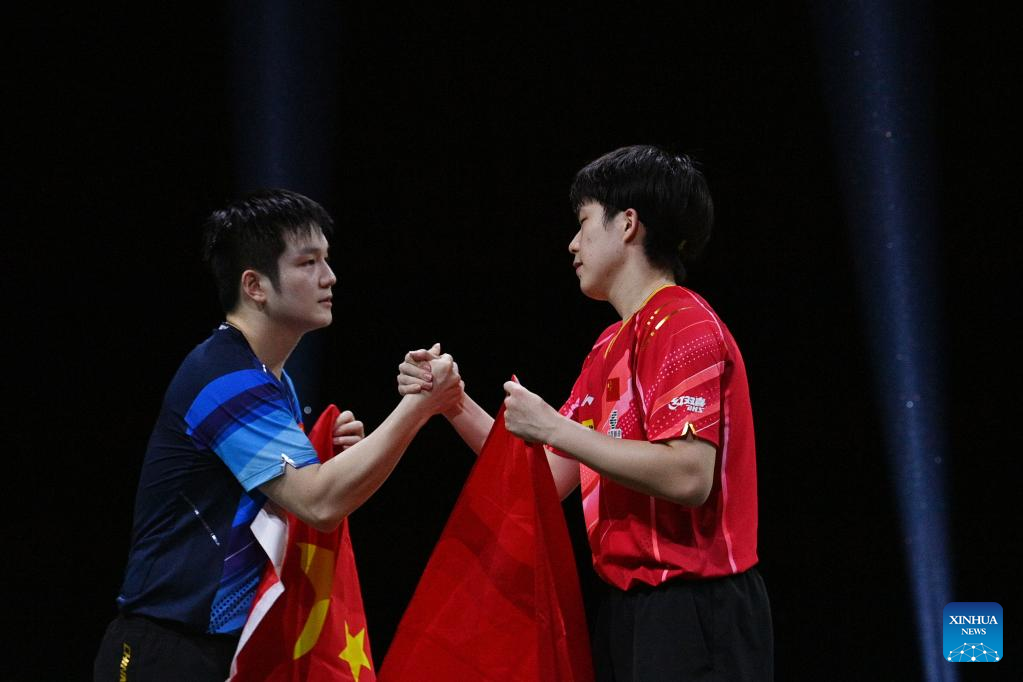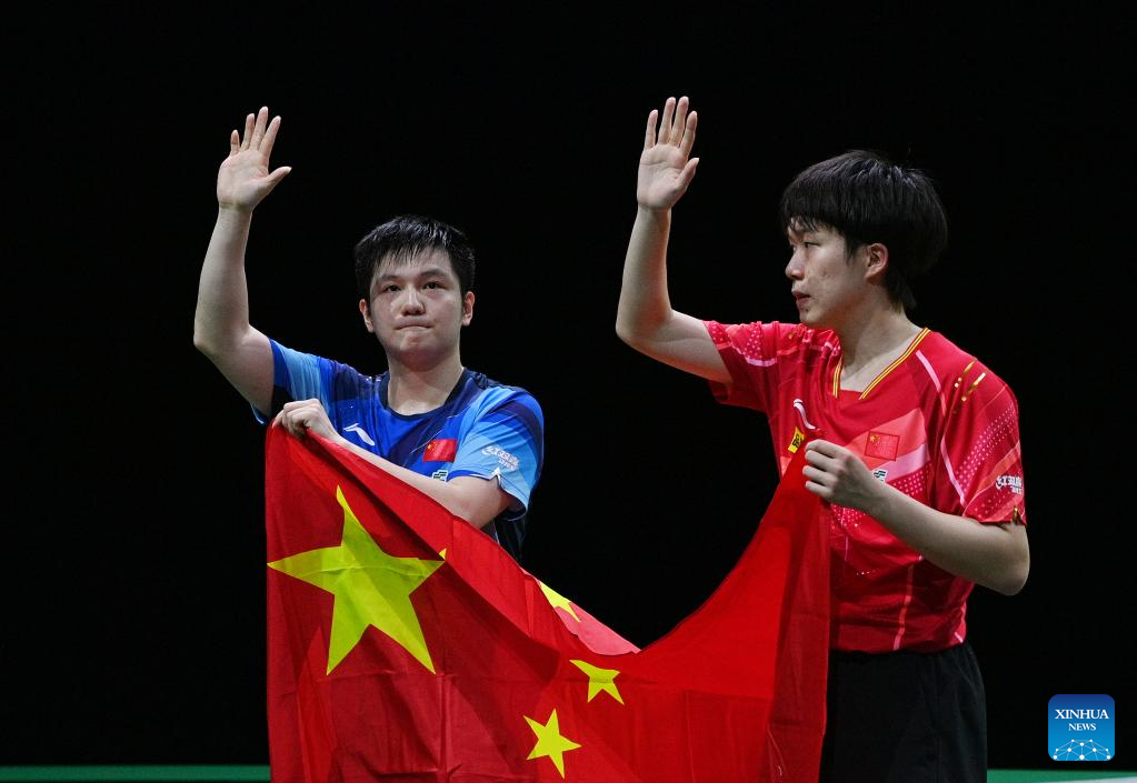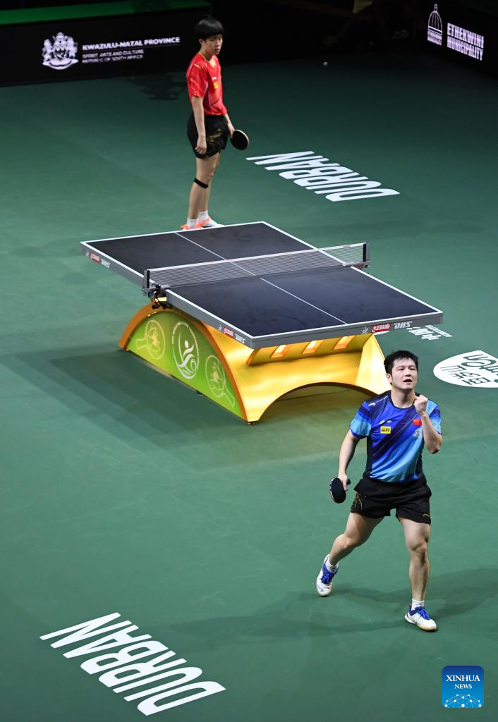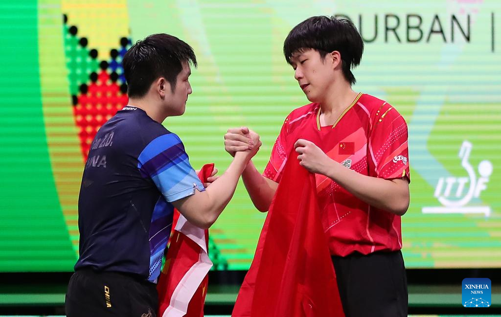 DURBAN, South Africa, May 28 (Xinhua) -- World No. 1 Sun Yingsha and Fan Zhendong of China emerged victorious in the women's and men's singles respectively at the ITTF World Table Tennis Championships (WTTC) Finals here on Sunday.
