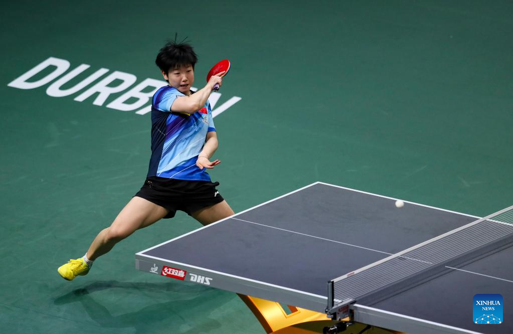 Sun Yingsha of China hits a return during the women's singles final match against her compatriot Chen Meng at 2023 ITTF Table Tennis World Championships Finals in Durban, South Africa, May 28, 2023. (Xinhua/Zhang Yudong)