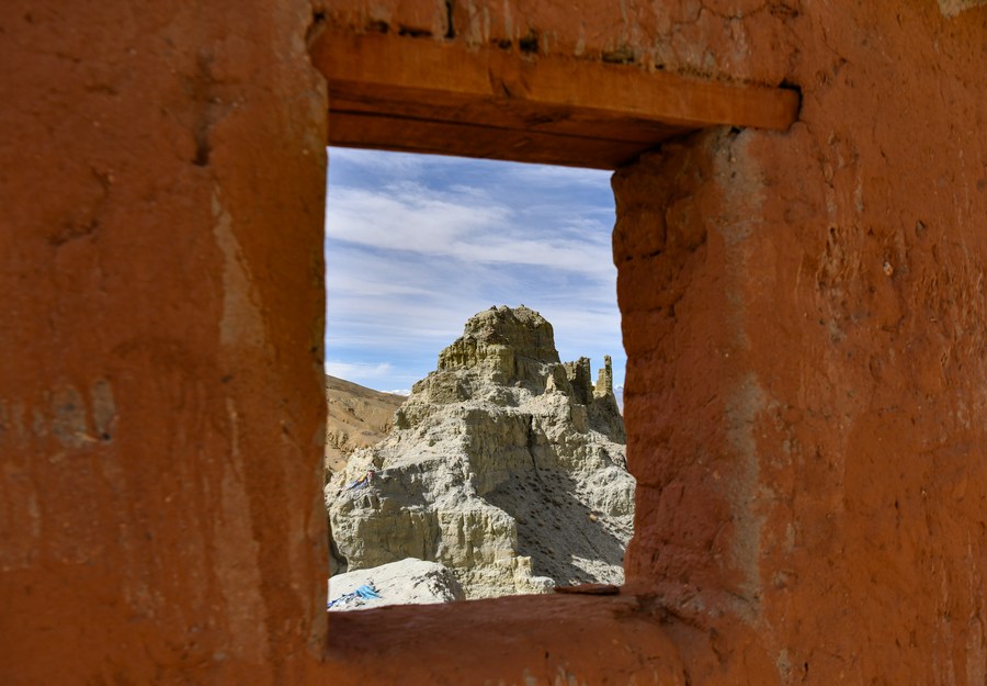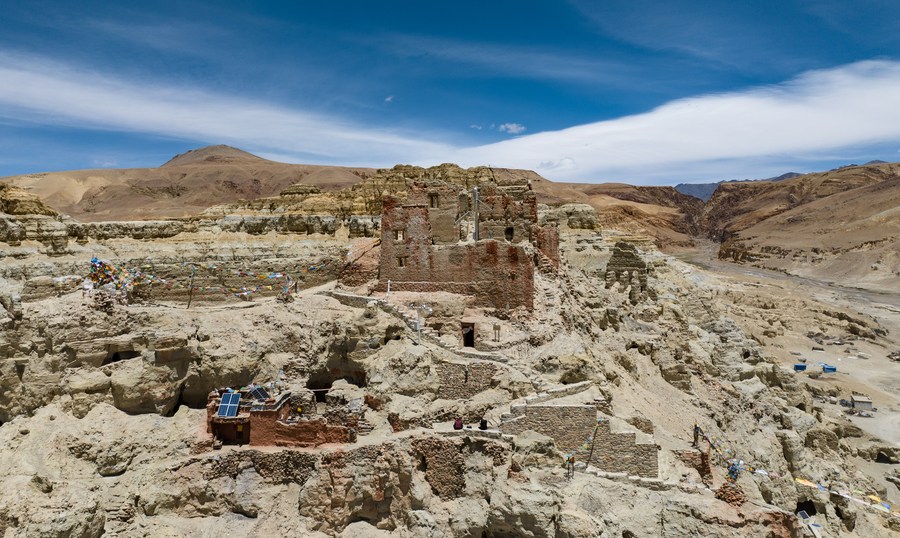 This photo taken on May 26, 2023 shows part of the Piyang grottoes in Zanda County of Ngari Prefecture, southwest China's Tibet Autonomous Region. (Xinhua/Jigme Dorje)