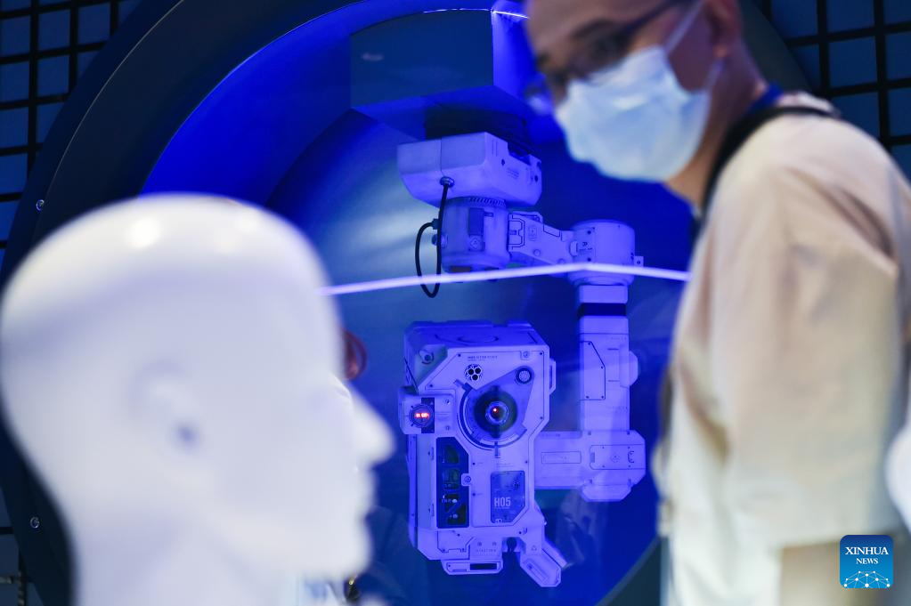 People visit an exhibition at China Science Fiction Convention (CSFC) 2023 in Beijing, capital of China, May 30, 2023. China Science Fiction Convention (CSFC) 2023 is scheduled to run in Beijing from May 29 to June 4. It is included as a sideline event of this year's Zhongguancun Forum (ZGC Forum) for the first time. Various events such as forums and sci-fi exhibitions are arranged in this year's convention. (Xinhua/Chen Zhonghao)