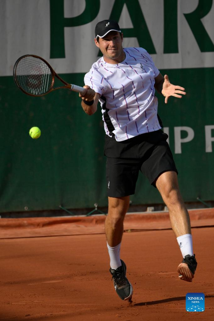 Susan Lajovic of Serbia hits a return during the men's singles first round match against Zhang Zhizhen of China at the French Open tennis tournament at Roland Garros in Paris, France, May 29, 2023. (Photo by Julien Mattia/Xinhua)