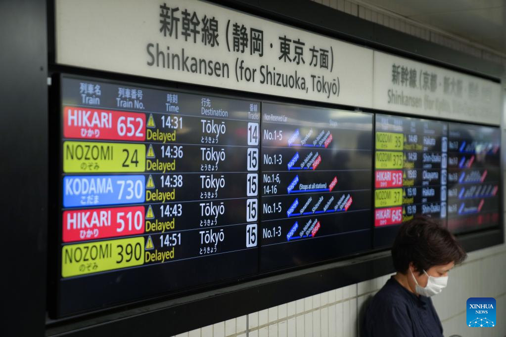 Passengers wait for Shinkansen trains at the entrance of Nagoya Station in Nagoya, Japan, June 2, 2023. Many rail transit lines were shut down due to torrential rain in some areas of Japan on Friday. (Xinhua/Zhang Xiaoyu)