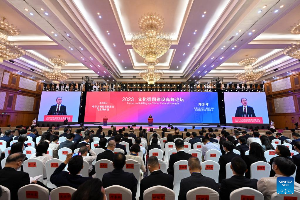 Zheng Yongnian, a professor with the Chinese University of Hong Kong (Shenzhen) and president of the Institute for International Affairs (Qianhai), speaks at the Forum on Building up China's Cultural Strength in Shenzhen, south China's Guangdong Province, June 7, 2023. The first Forum on Building up China's Cultural Strength opened Wednesday in Shenzhen. (Xinhua/Mao Siqian)