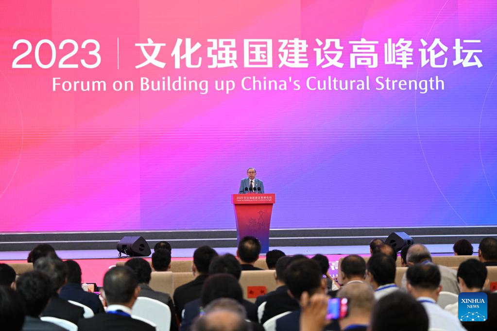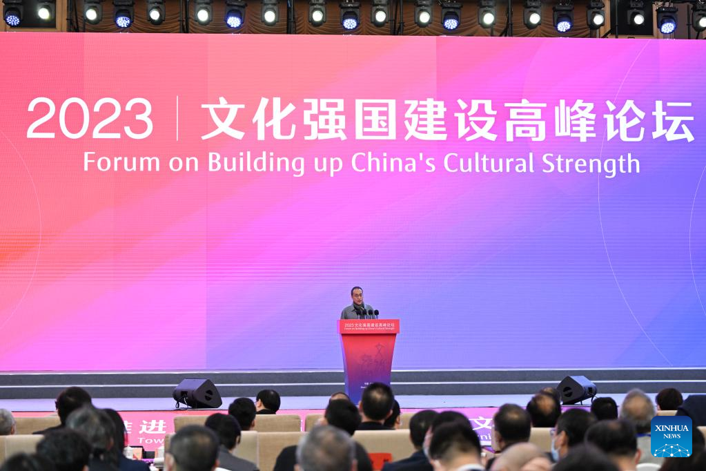 Wang Xudong, director of the Palace Museum, speaks at the Forum on Building up China's Cultural Strength in Shenzhen, south China's Guangdong Province, June 7, 2023. The first Forum on Building up China's Cultural Strength opened Wednesday in Shenzhen. (Xinhua/Mao Siqian)