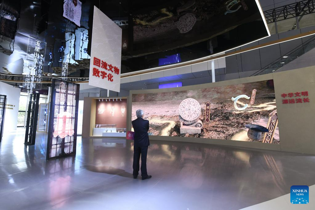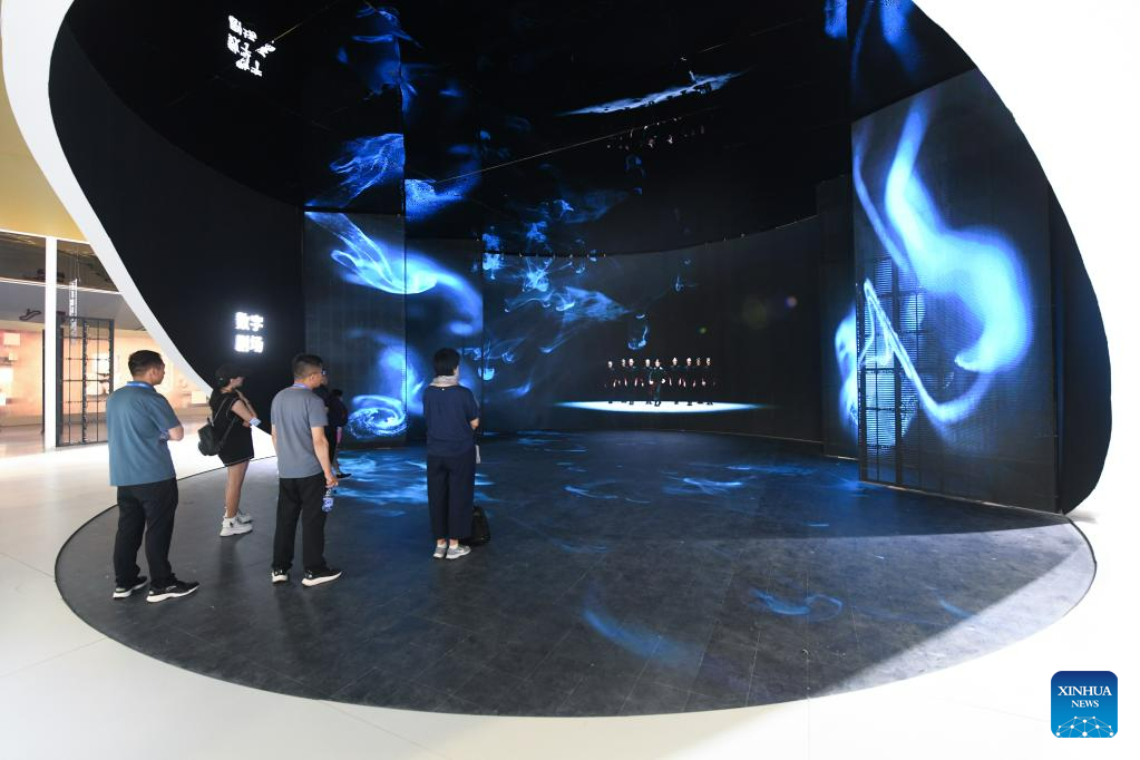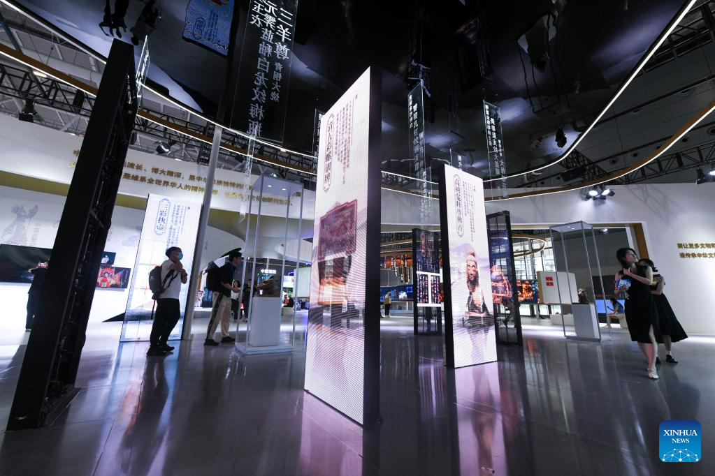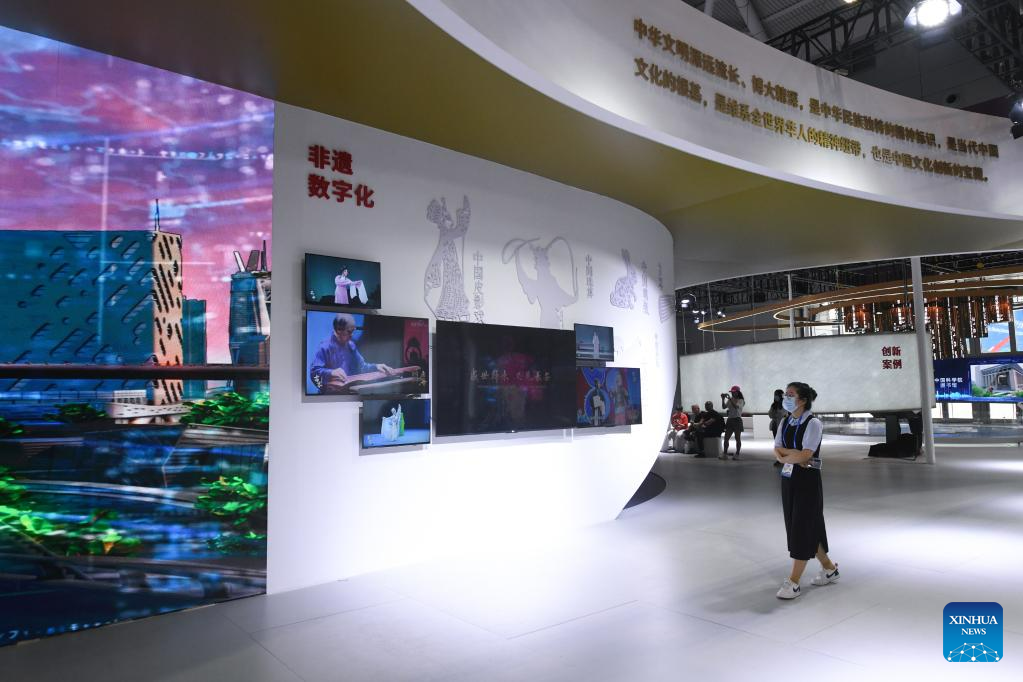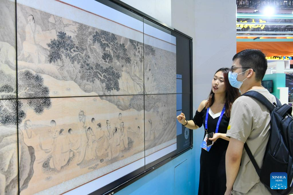 A digital China exhibition area has been set up for the first time at the cultural industries fair to highlight and promote national-level market players, major platforms, and the latest technological innovations in the cultural industries. (Xinhua/Liang Xu)