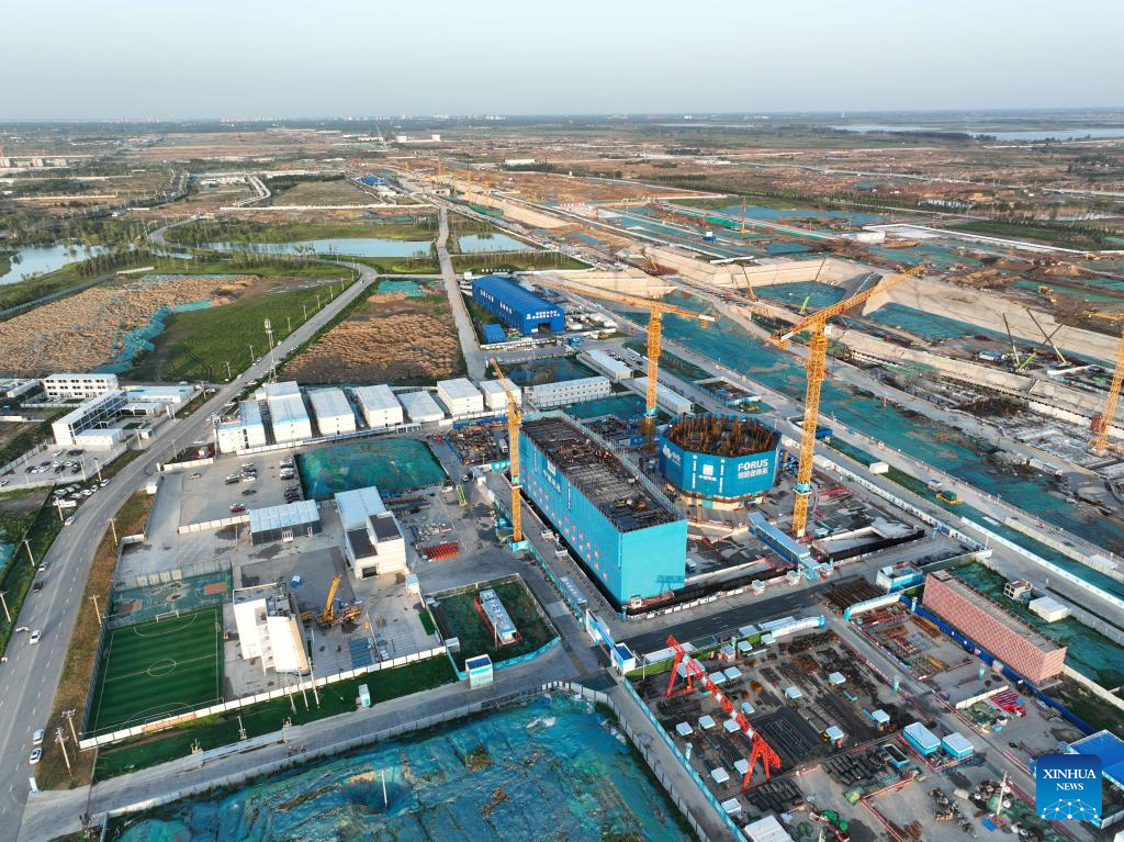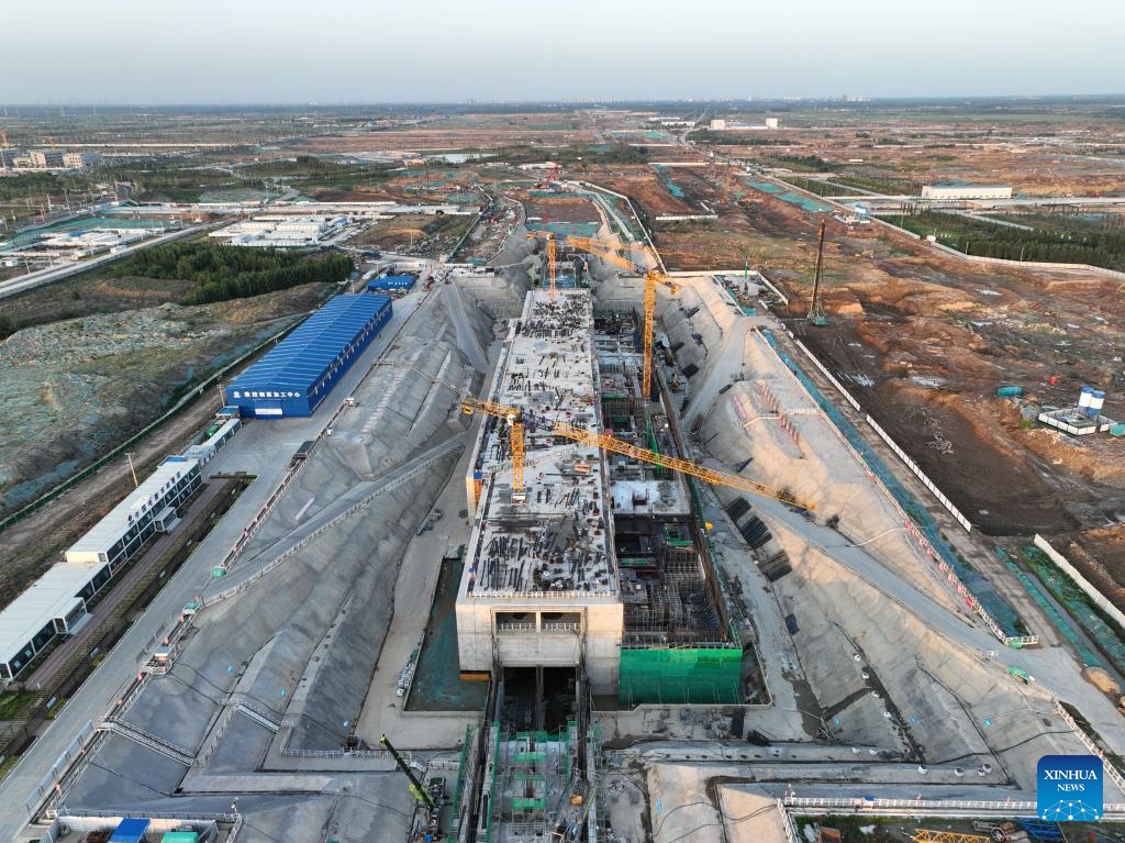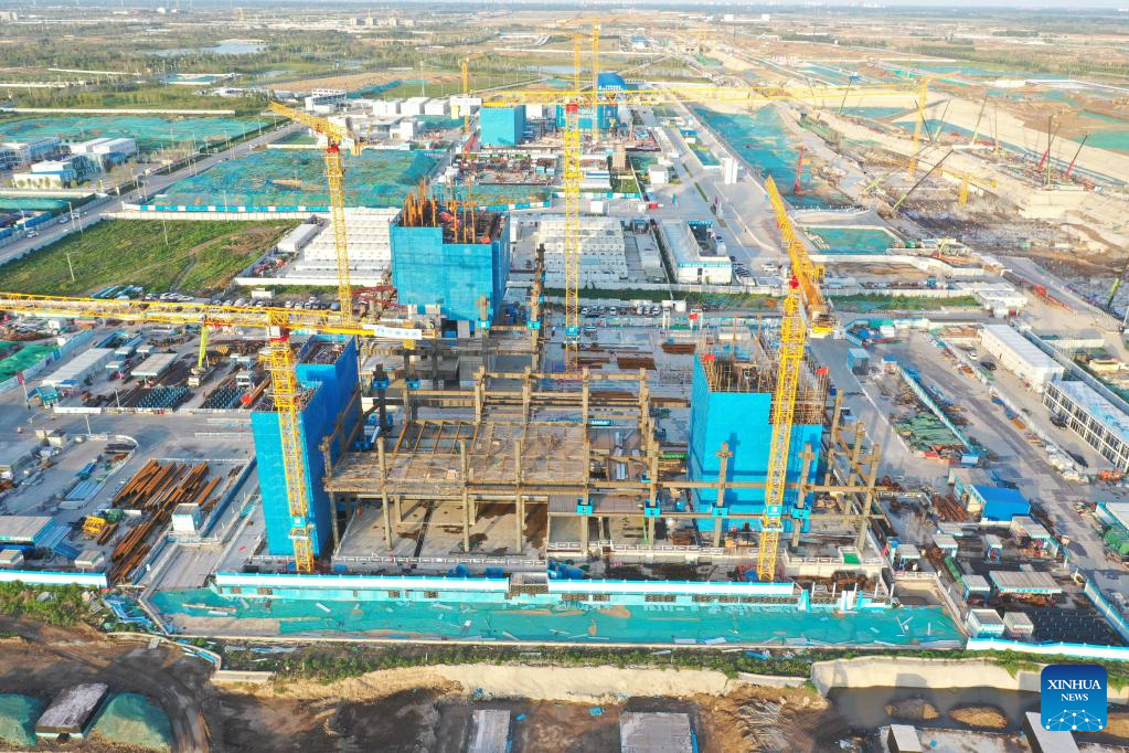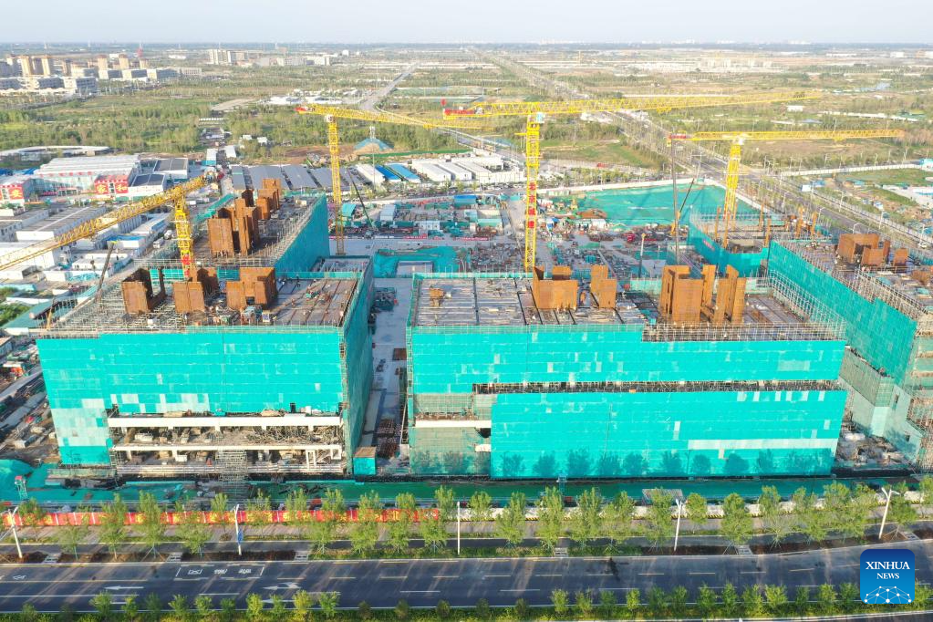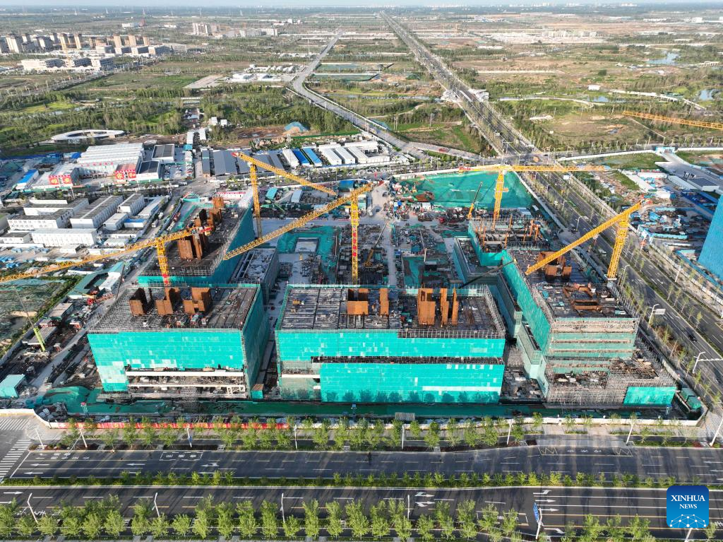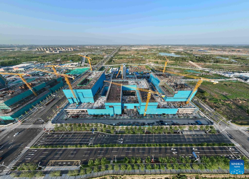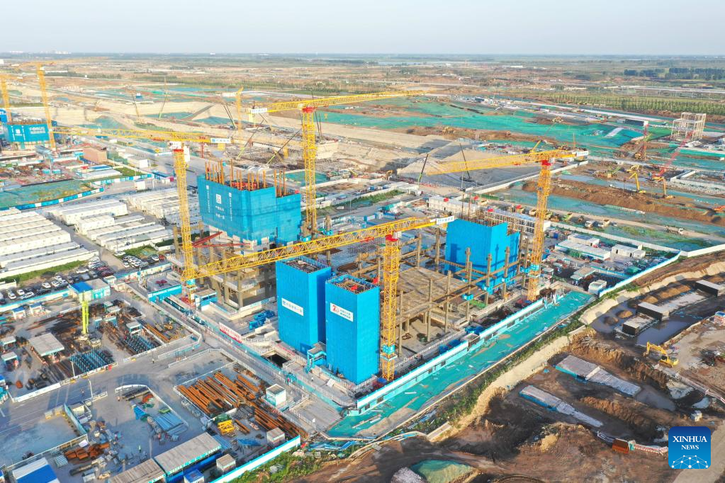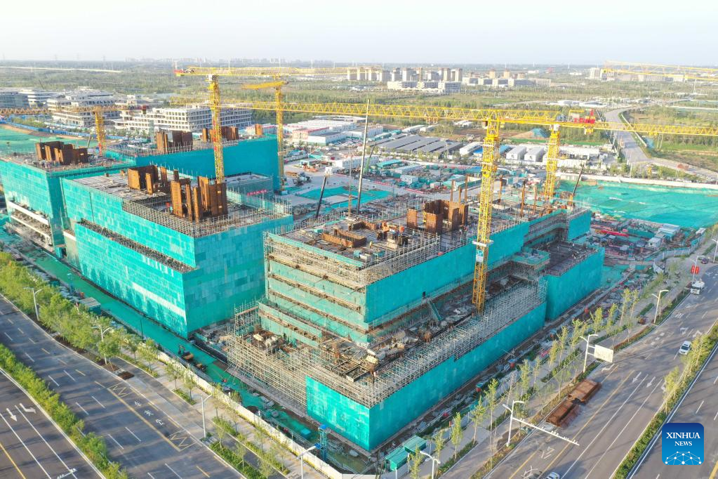 This aerial photo taken on July 4, 2023 shows the construction site of the headquarters of China Huaneng Group in the start-up area in Xiong'an New Area, north China's Hebei Province. China announced plans to establish the Xiong'an New Area on April 1, 2017, located about 100 km southwest of Beijing, aiming to build the area into a national model of high-quality development and a new engine for the modern economic system.
