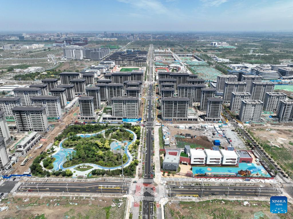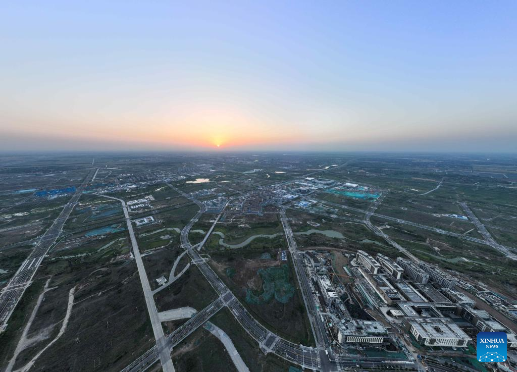 This aerial photo taken on July 4, 2023 shows the north zone of an internet industrial park in the start-up area in Xiong'an New Area, north China's Hebei Province. China announced plans to establish the Xiong'an New Area on April 1, 2017, located about 100 km southwest of Beijing, aiming to build the area into a national model of high-quality development and a new engine for the modern economic system.