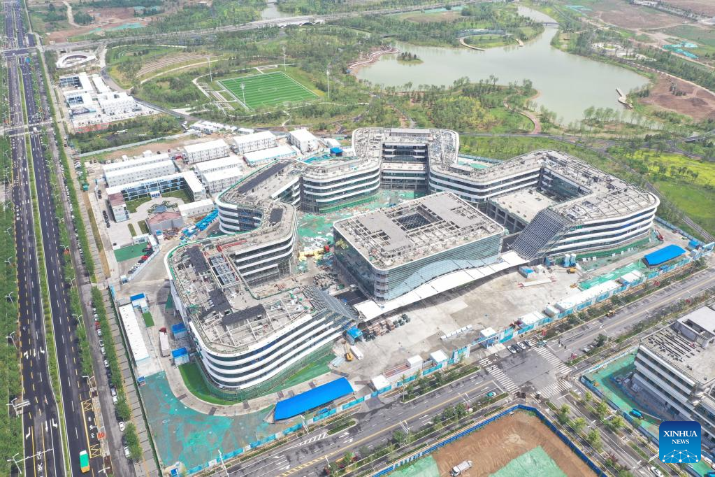 This aerial photo taken on July 4, 2023 shows the construction site of Sinochem Holdings buildings in the start-up area in Xiong'an New Area, north China's Hebei Province. China announced plans to establish the Xiong'an New Area on April 1, 2017, located about 100 km southwest of Beijing, aiming to build the area into a national model of high-quality development and a new engine for the modern economic system.