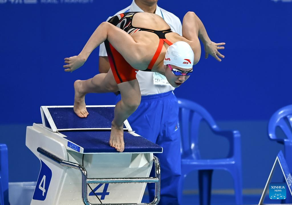 Zhang Yufei of China competes during the Women's 50m Butterfly Heats of swimming at the 31st FISU Summer World University Games in Chengdu, southwest China's Sichuan Province, Aug. 1, 2023. (Xinhua/Chen Zeguo)