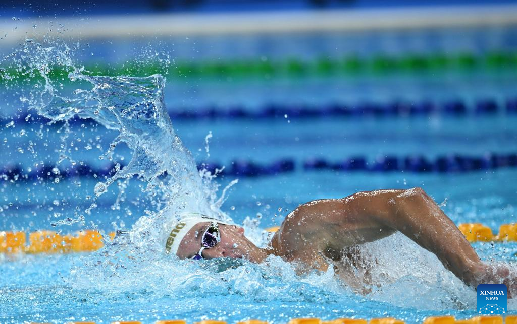 Eduardo Oliveira de Moraes of Brazil competes during the Men's 400m Freestyle Final of swimming at the 31st FISU Summer World University Games in Chengdu, southwest China's Sichuan Province, Aug. 1, 2023. (Xinhua/Zhang Long)