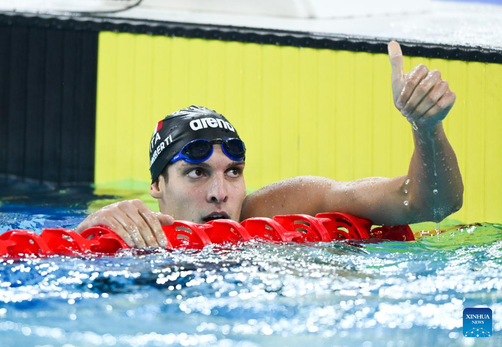 Matteo Lamberti of Italy competes during the Men's 400m Freestyle Final of swimming at the 31st FISU Summer World University Games in Chengdu, southwest China's Sichuan Province, Aug. 1, 2023. (Xinhua/Chen Zeguo)