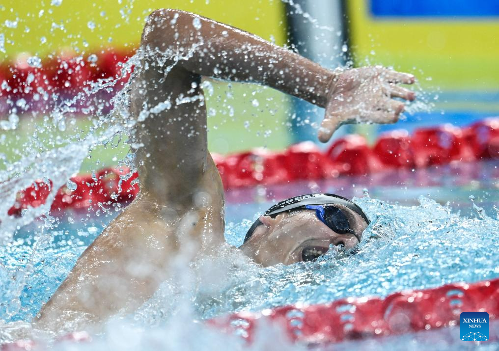 Matteo Lamberti of Italy competes during the Men's 400m Freestyle Final of swimming at the 31st FISU Summer World University Games in Chengdu, southwest China's Sichuan Province, Aug. 1, 2023. (Xinhua/Zhang Long)