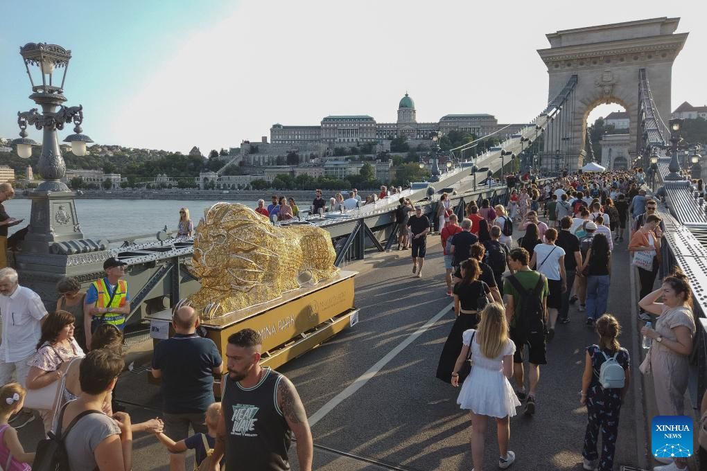 BUDAPEST, Aug. 4 (Xinhua) -- In a momentous occasion marking the end of a comprehensive two-year renovation, Budapest's iconic Szechenyi Chain Bridge, the oldest permanent bridge in the city, has been fully reopened to the grand public on Friday.