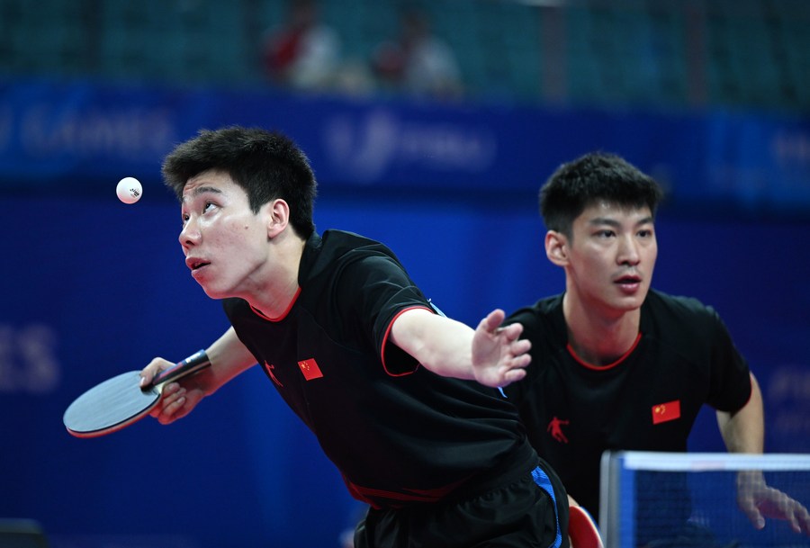 CHENGDU, Aug. 4 (Xinhua) -- China's paddlers Qian Tianyi/Zhao Shang beat their compatriots He Zhuojia/Wang Xiaotong 4-3 to grab the women's doubles title, and their male compatriots Xue Fei/Xu Yingbin edged over Hamada Kazuki/Tanigaki Yuma of Japan, also in 4-3 to claim the men's doubles title at the 31st FISU World University Games here on Friday.