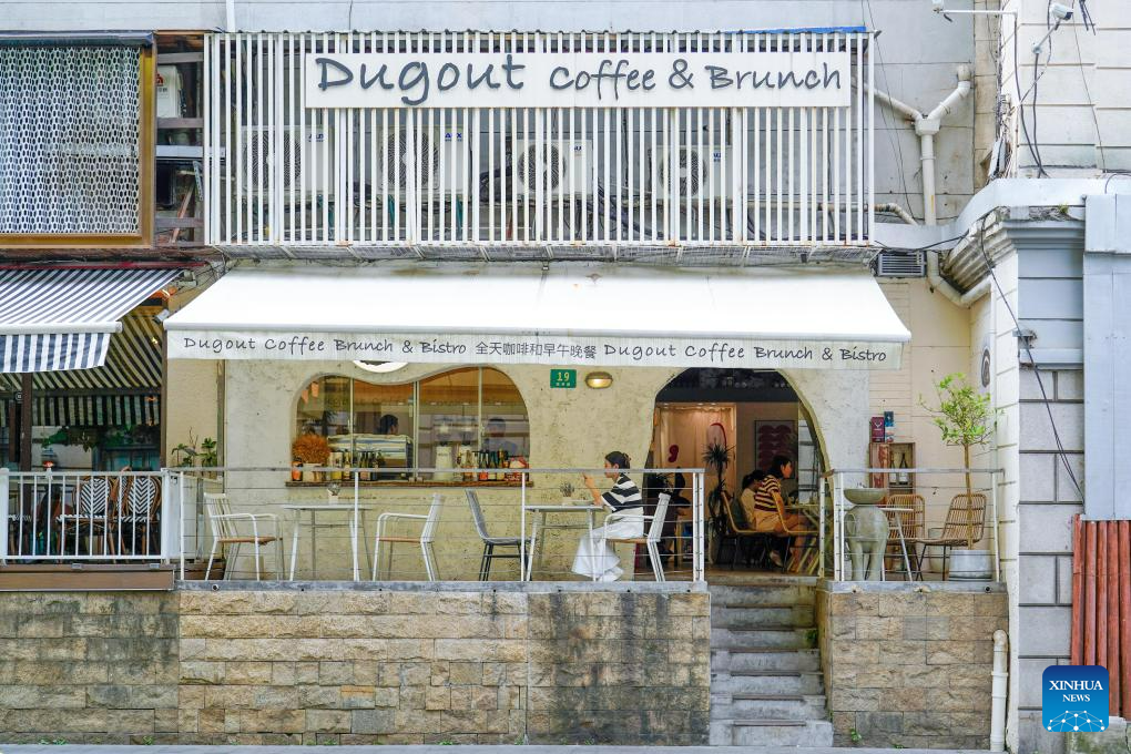 This photo taken on Aug. 10, 2023 shows Dugout Coffee & Brunch in east China's Shanghai. All the seven employees of Dugout Coffee & Brunch are hearing-impaired people. The owner of the coffee hopes to pass on the positive attitude of the employees to more people. (Photo by Li Xinyi/Xinhua)