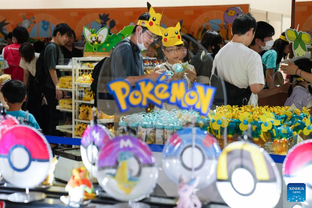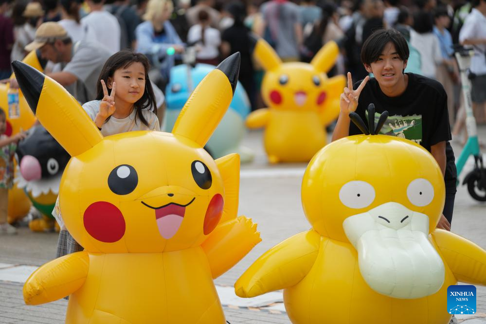 People participate in Pokemon festival at Minatomirai in Yokohama, Japan, Aug. 13, 2023. To commemorate the launch of the 2023 Pokemon World Championships, a Pokemon festival is held in Yokohama's Minatomirai from Aug.11 to Aug.14. (Xinhua/Zhang Xiaoyu)