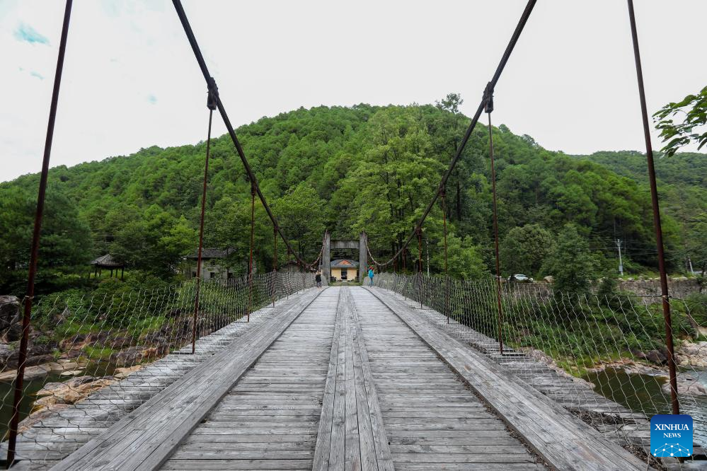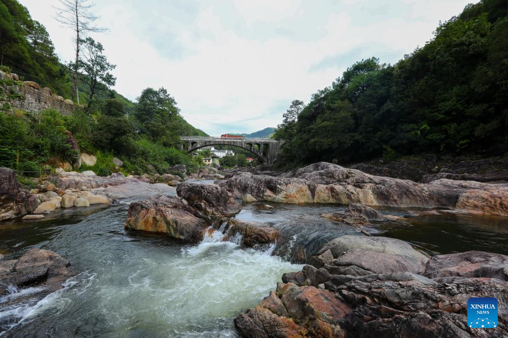 This photo taken on Aug. 11, 2023 shows a bridge across the Binlang River in the northern section of the Stilwell Road in Houqiao Township of Tengchong, southwest China's Yunnan Province.