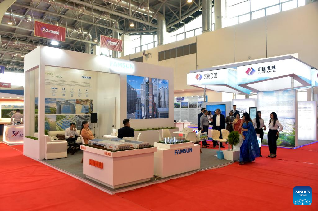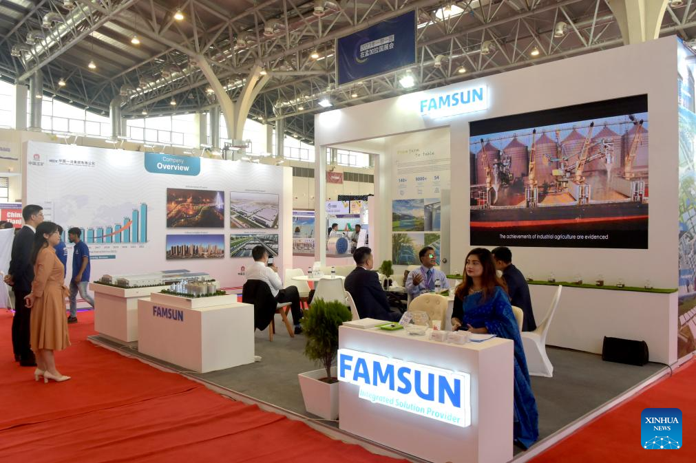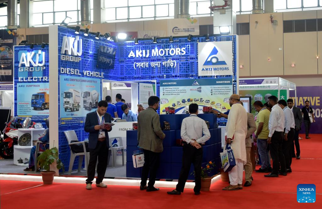 People visit a booth during The Belt and Road Initiative in Bangladesh Exhibition 2023 in Dhaka, Bangladesh, on Sept. 8, 2023. (Xinhua)