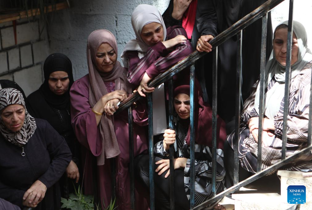 People mourn during the funeral of Milad al-Raai in the West Bank city of Hebron, on Sept. 10, 2023. The 15-year-old Palestinian boy was killed by Israeli soldiers during clashes in Hebron on Saturday, the Palestinian Health Ministry said in a statement. (Photo by Mamoun Wazwaz/Xinhua)