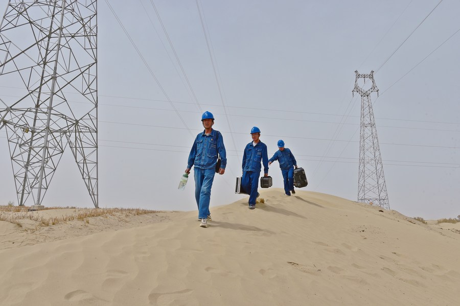 Stretching over 264 km, the transmission line plays a crucial role in ensuring a stable power supply to counties and villages situated along the southern edge of the Taklimakan in northwest China's Xinjiang Uygur Autonomous Region, including Qiemo and Ruoqiang.