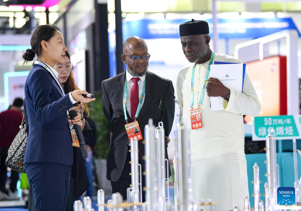 Guests learn about a clean energy project at the sixth China-Arab States Expo in Yinchuan, northwest China's Ningxia Hui Autonomous Region, Sept. 22, 2023. The sixth China-Arab States Expo opened Thursday in Yinchuan, capital of northwest China's Ningxia Hui Autonomous Region.