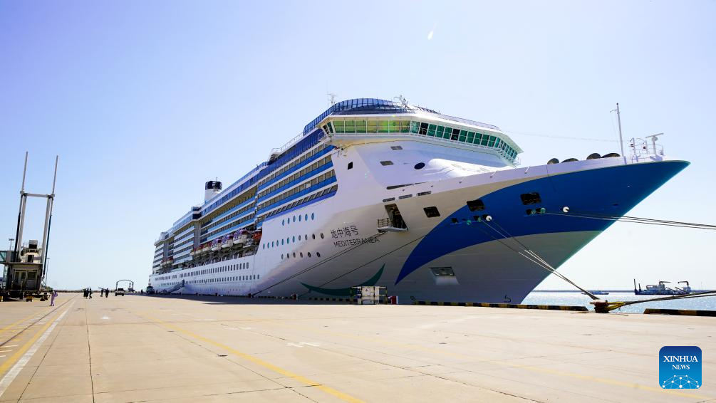 This photo taken on Sept. 22, 2023 shows the cruise ship "Mediterranea" docked at a port in north China's Tianjin Municipality. (Xinhua)
