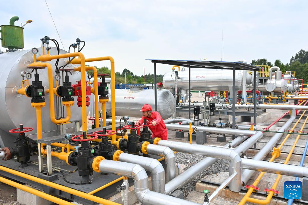 A technician carries out routine maintenance at a gas gathering station of the Fuling shale gas field in Fuling, southwest China's Chongqing, Sept. 21, 2023.