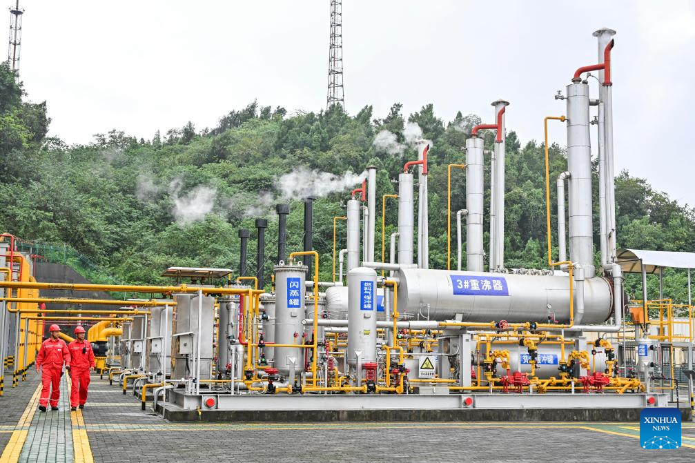 The Fuling shale gas field in Chongqing has produced over 60 billion cubic meters of natural gas, according to Sinopec, its developer and China's largest oil refiner. The gas field, which began commercial development in 2014, brings green and clean energy to more than 70 cities along the Yangtze River Economic Belt. (Xinhua/Wang Quanchao)