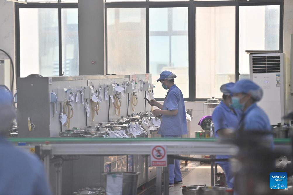 Employees work on a production line of Guangxi Liuyao Group Co., Ltd., a pharmaceutical company, in Liuzhou City, south China's Guangxi Zhuang Autonomous Region, Sept. 21, 2023. In recent years, Liuzhou has been promoting the cultivation and expansion of emerging industries such as new-energy, intelligent equipment and smart home appliances manufacturing, biomedicine and new-generation information technology. (Xinhua/Huang Xiaobang)