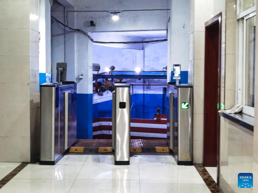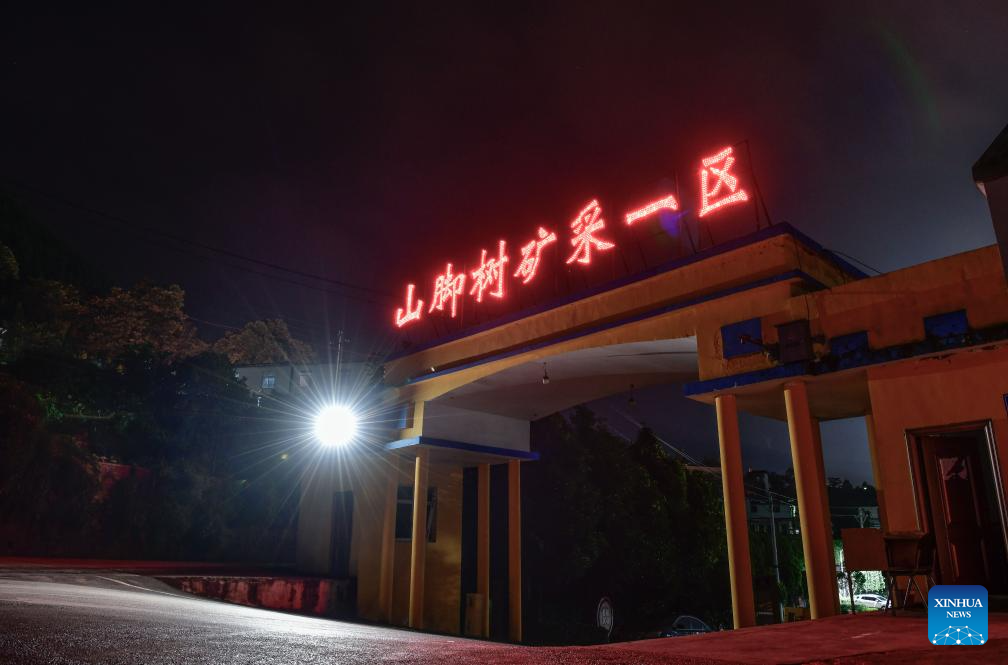 This photo taken on Sept. 25, 2023 shows the main gate to the first mining area of the Shanjiaoshu Coal Mine in Panguan Township in the city of Panzhou, southwest China's Guizhou Province. Sixteen people were dead in a fire of the Shanjiaoshu Coal Mine in Panzhou of Guizhou Sunday morning, local authorities said. (Xinhua/Yang Wenbin)
