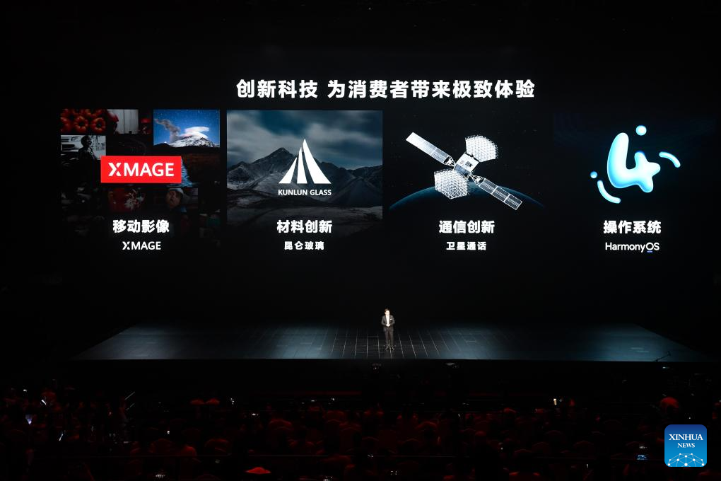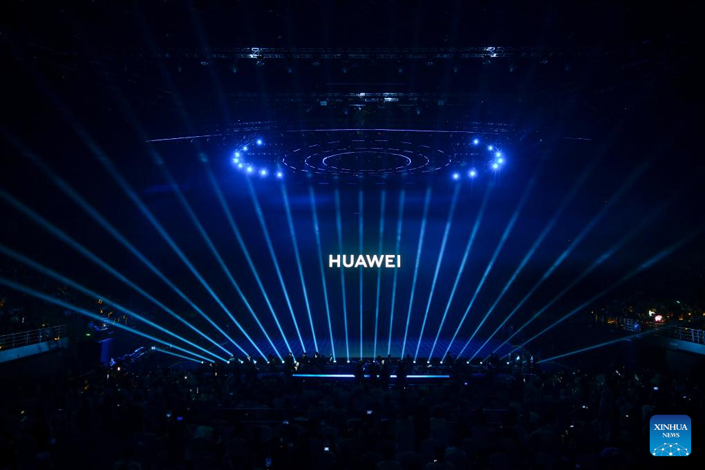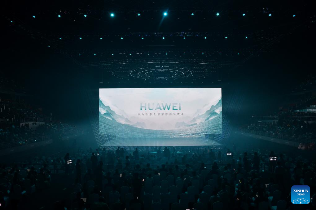 This photo taken on Sept. 25, 2023 shows a product launch event of Huawei in Shenzhen, south China's Guangdong Province. Chinese telecom giant Huawei held a product launch event on Monday in Shenzhen. (Xinhua/Liang Xu)