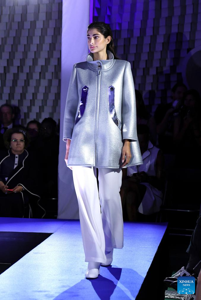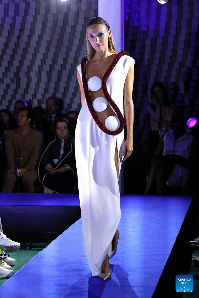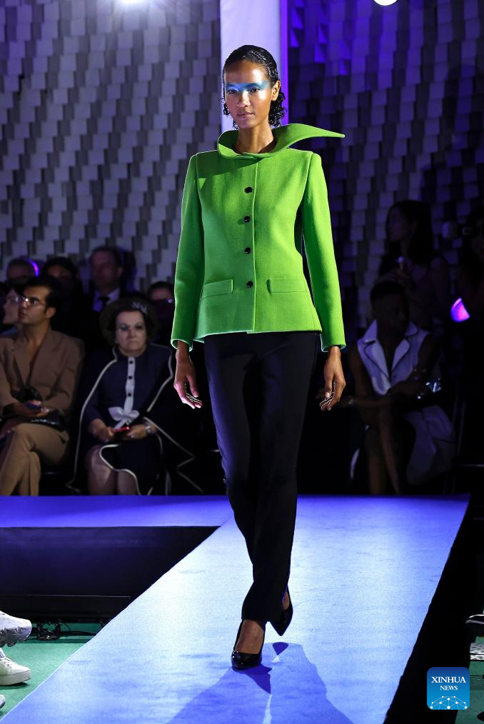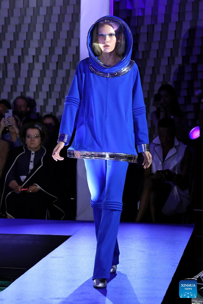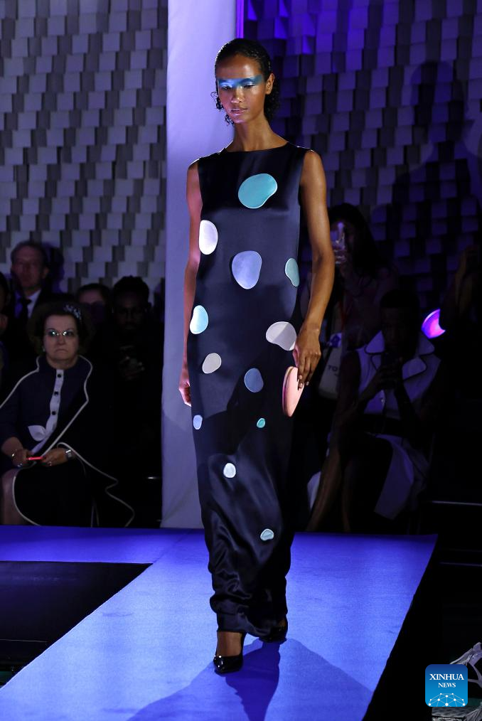 A model presents a creation by Pierre Cardin as part of its Spring/Summer 2024 ready-to-wear collections during the Paris Fashion Week in Paris, France, on Sept. 25, 2023. (Photo by Piero Biasion/Xinhua)