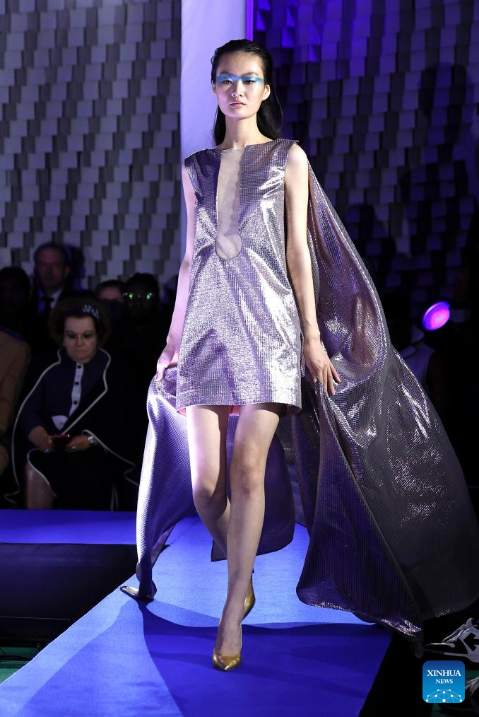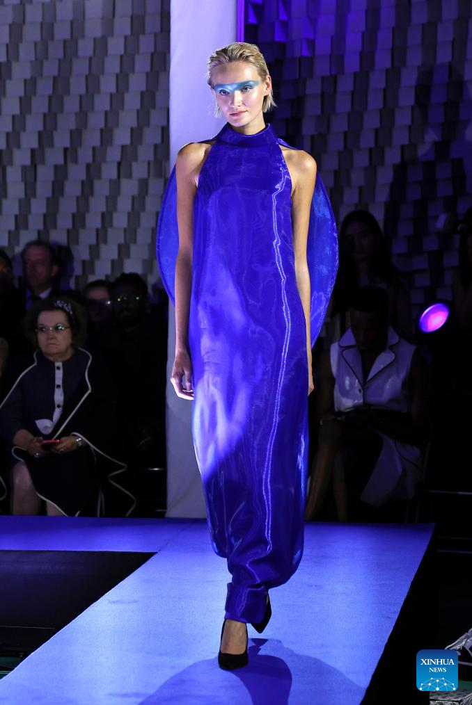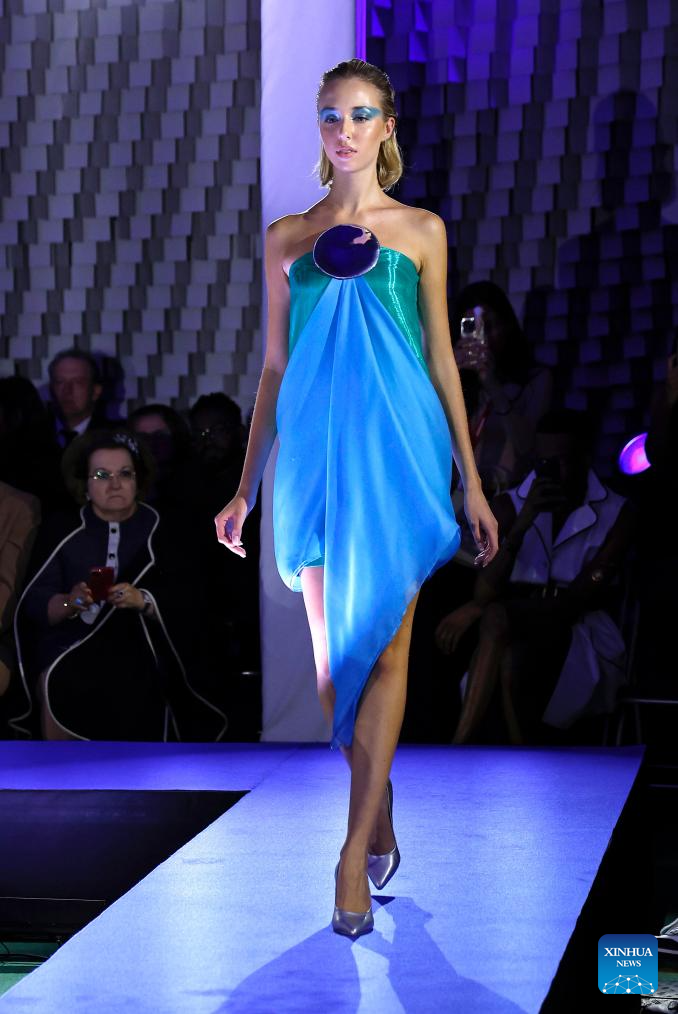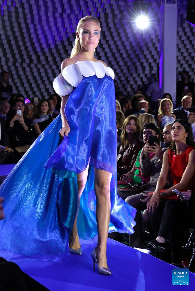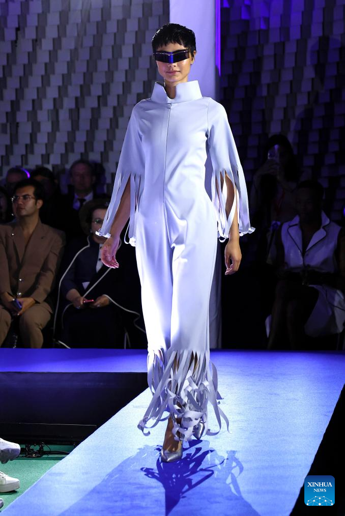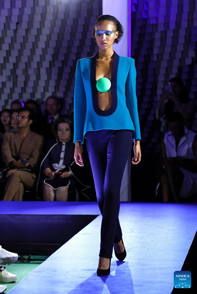 A model presents a creation by Pierre Cardin as part of its Spring/Summer 2024 ready-to-wear collections during the Paris Fashion Week in Paris, France, on Sept. 25, 2023. (Photo by Piero Biasion/Xinhua)