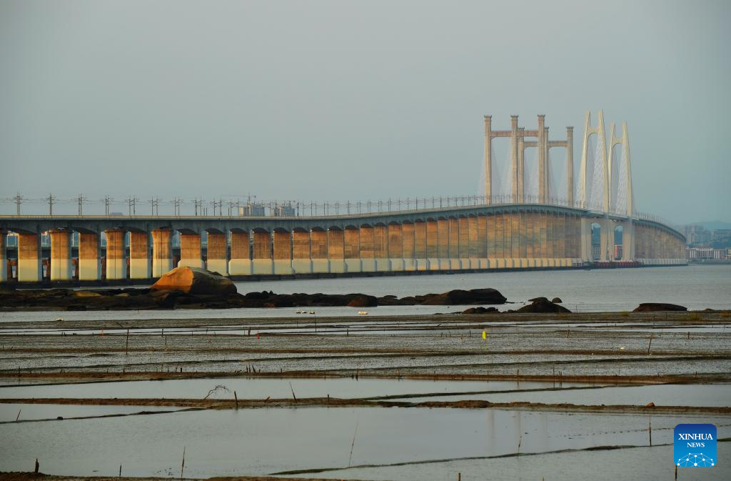As a key link in the railway, the 14.7-km Meizhou Bay cross-sea bridge is believed to be the country's first extradosed cable-stayed bridge on a sea-crossing high-speed railway.