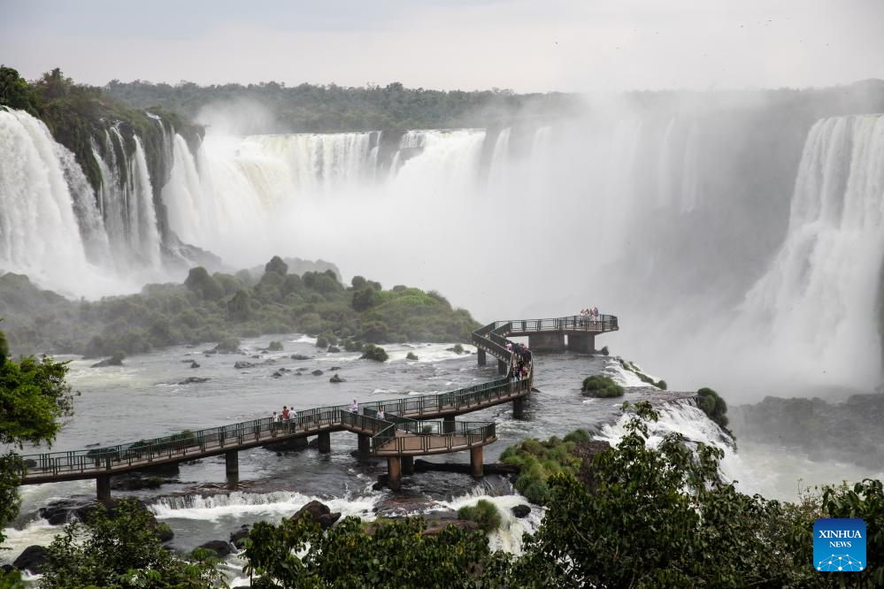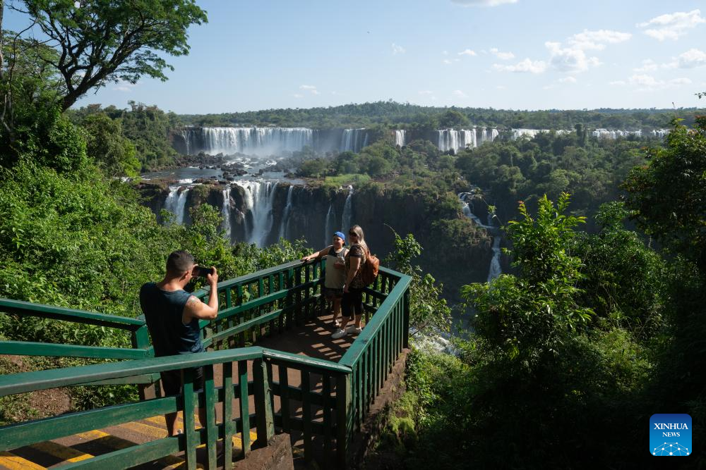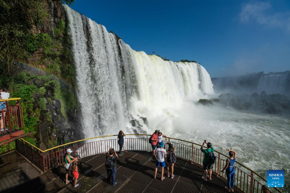 Tourists visit Iguazu National Park in the state of Parana, Brazil, Oct. 1, 2023. (Xinhua/Wang Tiancong)