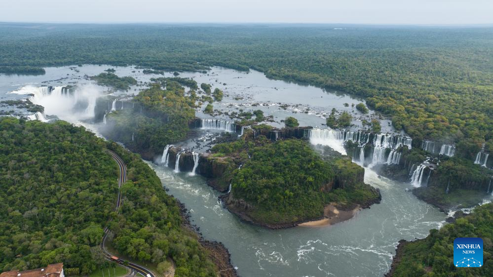 This aerial photo taken on Oct. 1, 2023 shows the Iguazu Falls at Iguazu National Park in the state of Parana, Brazil. (Xinhua/Wang Tiancong)
