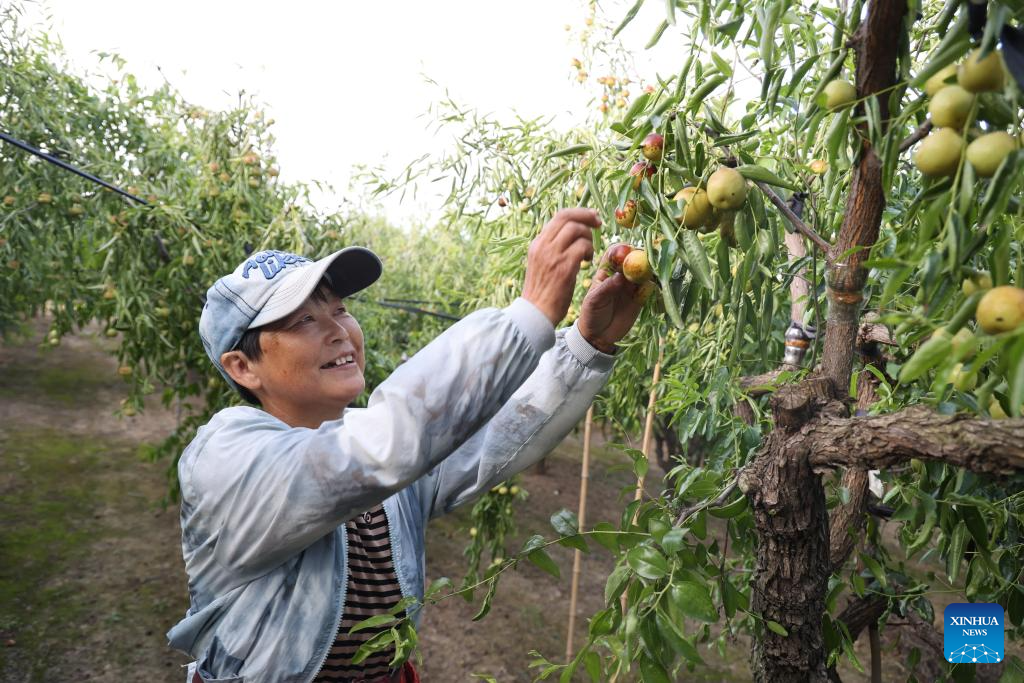 JINAN, Oct. 9 (Xinhua) -- Even though Sun Bingwu, 58, has tended to all of his 12 mu (about 0.8 hectares) of winter jujube trees, only a small part of his task has been completed. Sun has lots more work to do, because many orchardists in other regions are waiting for him to instruct them in the art of winter jujube planting.