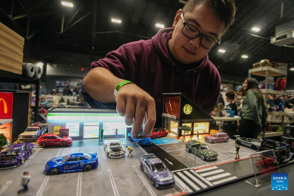 Miniature model kits are displayed at the Vancouver Comic and Toy Show in Vancouver, British Columbia, Canada, on Oct. 21, 2023. The Vancouver Comic and Toy Show, a two-day event over the weekend, features a vast array of collectible toys, superhero memorabilia, comic books, and pop culture items, drawing thousands of collectors and enthusiasts. (Photo by Liang Sen/Xinhua)