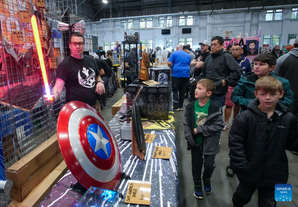 People visit the Vancouver Comic and Toy Show in Vancouver, British Columbia, Canada, on Oct. 21, 2023. The Vancouver Comic and Toy Show, a two-day event over the weekend, features a vast array of collectible toys, superhero memorabilia, comic books, and pop culture items, drawing thousands of collectors and enthusiasts. (Photo by Liang Sen/Xinhua)