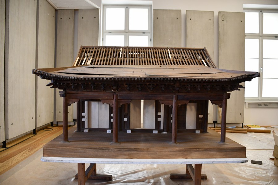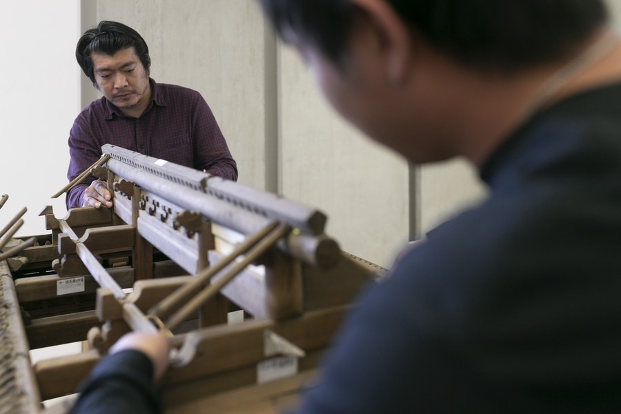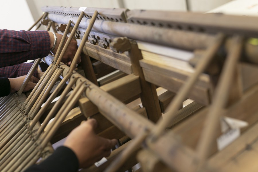 Shi Sunming, engineer of the Restoration Technology Department of the Palace Museum, said the model they are restoring makes up a three-bay ancient gate with a saddle roof, which was often used in Chinese palaces, temples or gardens.