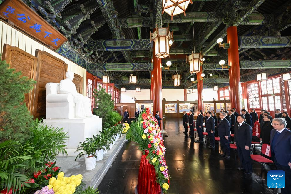 Flowers were laid in front of a statue of Sun by senior officials from the CPPCC National Committee, the Central Committee of the Revolutionary Committee of the Chinese Kuomintang, the United Front Work Department of the Communist Party of China Central Committee, and the Beijing municipal government.